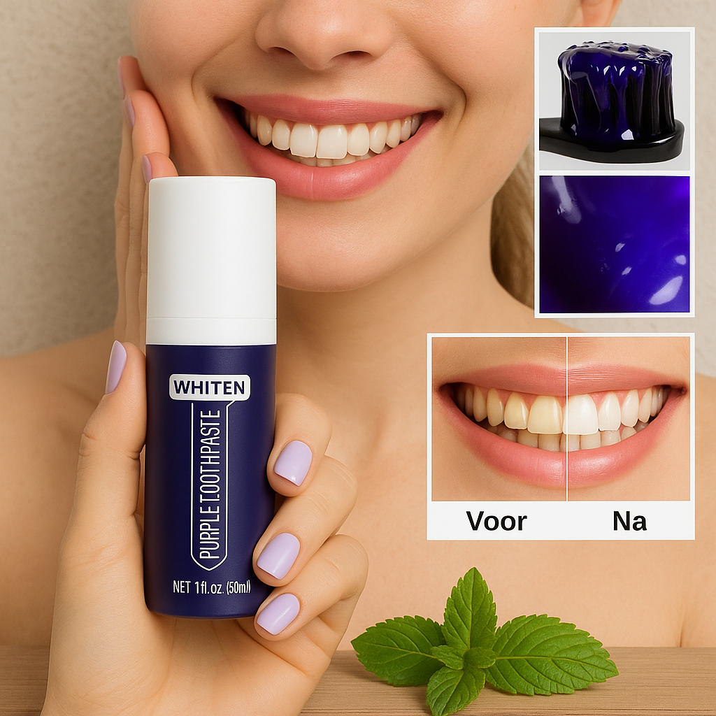 Paarse shampoo ken je wel, toch? Nu is er ook een voor je tanden,